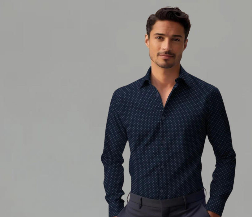 Whether it’s your 1st date or nth, you can’t go wrong in this stylish Italian finish dress shirt. It’s got the perfect combination of elevated style and comfort to help you look and feel great while exuding confidence. The smooth cotton-lycra fabric looks stylish, yet feels great, and resists creases. It pairs well with black trousers.