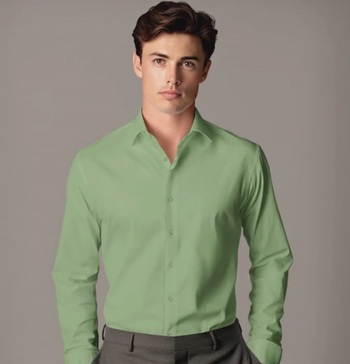Wrinkle-resistant Cotton-Lycra Shirt - Leaf Green - Long Sleeve